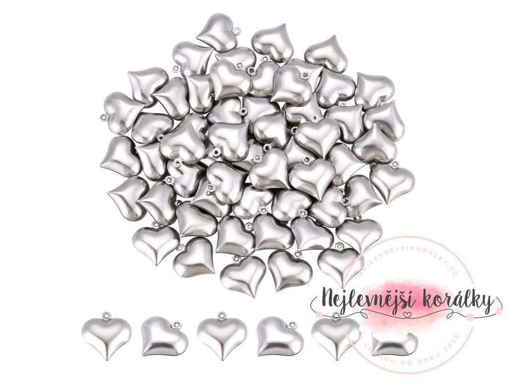 Kovový přívěsek ve tvaru srdce o výšce 17 mm, šířce 16 mm, hloubce 3 mm s velikostí průvleku 1 mm. Je velice lehký, protože je dutý.