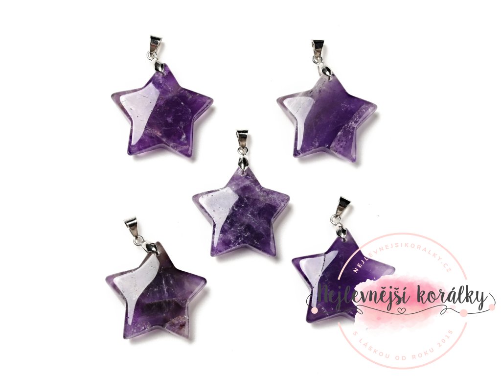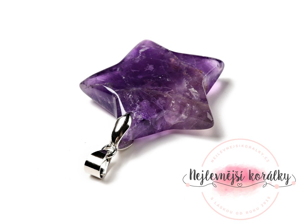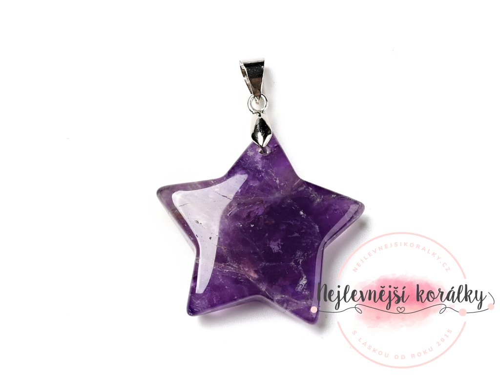 Přívěsek z přírodního kamene - ametyst - hvězda - 29 x 30 x 8 mm - 1 ks