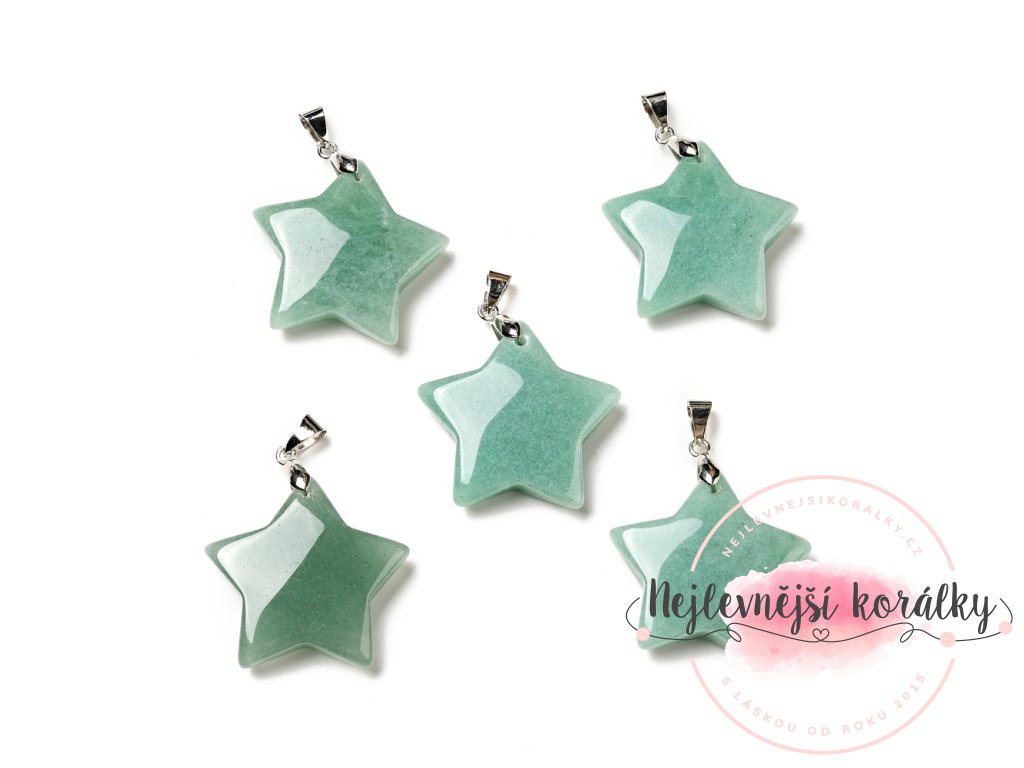 Přívěsek z přírodního kamene - avanturín - hvězda - 29 x 30 x 8 mm - 1 ks