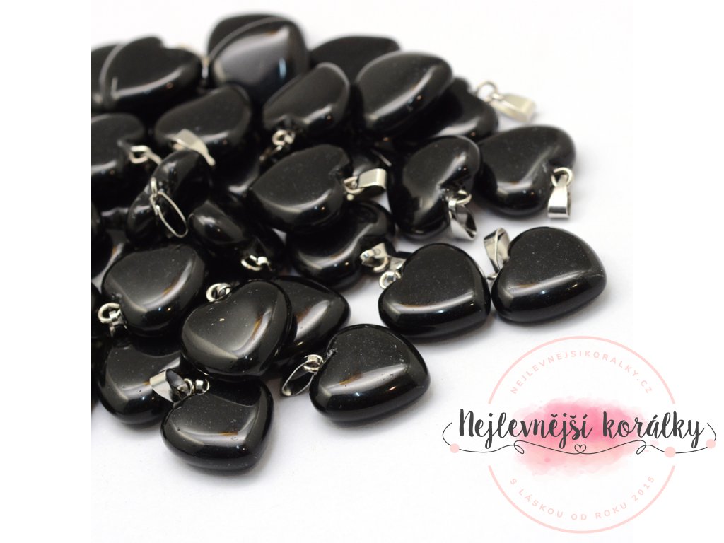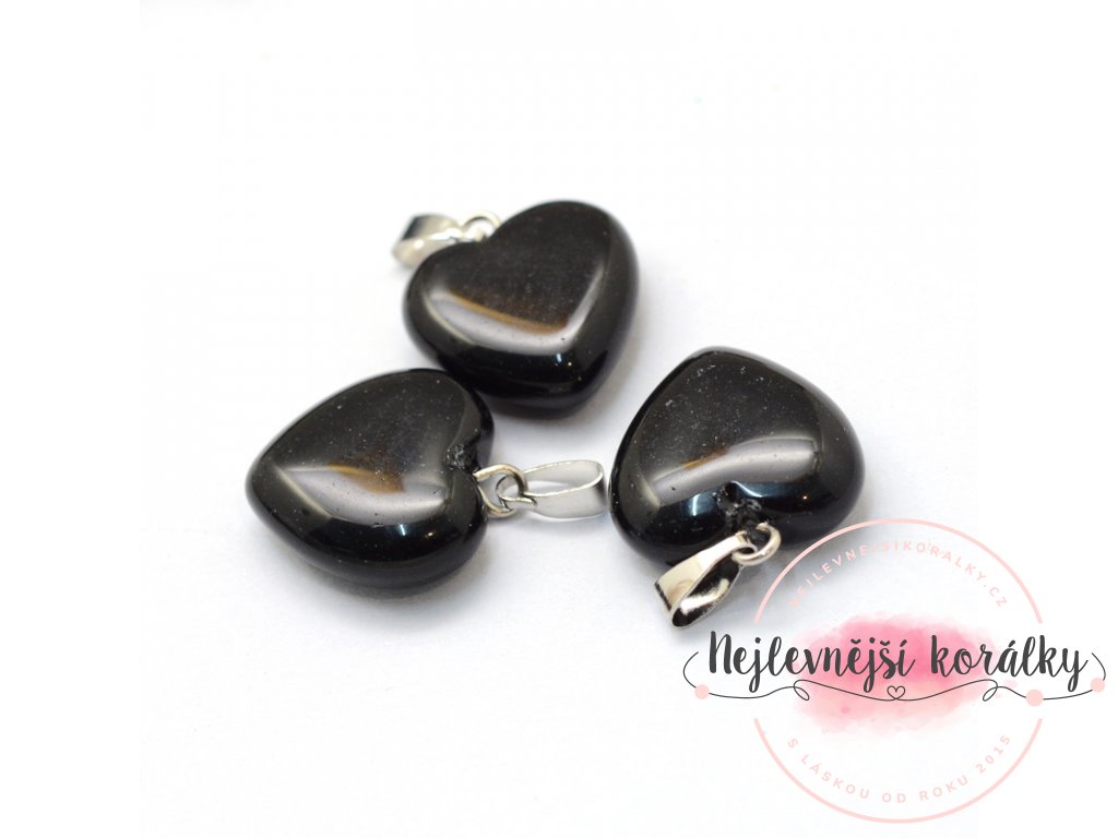 Přívěsek z přírodního kamene - černý kámen - srdce - 17-19 x 15-16 x 5-8 mm - 1 ks