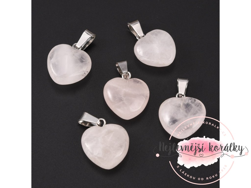 Přívěsek z přírodního kamene - růženín - srdce - 17-19 x 15-16 x 5-8 mm - 1 ks
