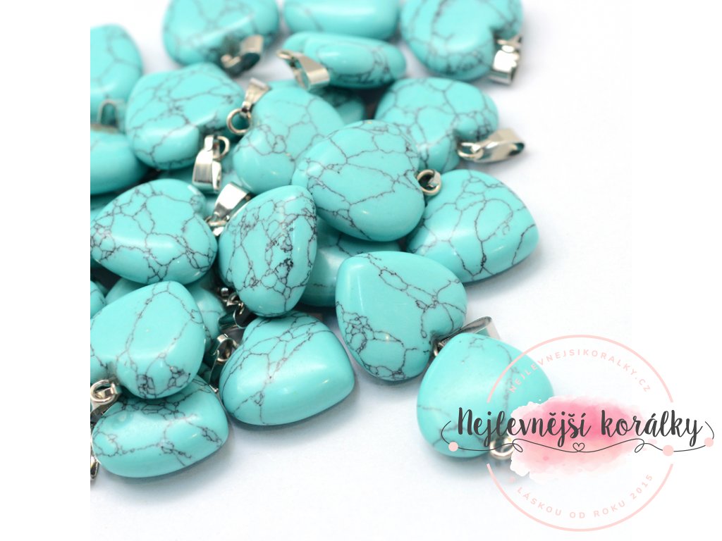 Přívěsek z přírodního kamene - syntetický tyrkys - srdce - 17-19 x 15-16 x 5-8 mm - 1 ks