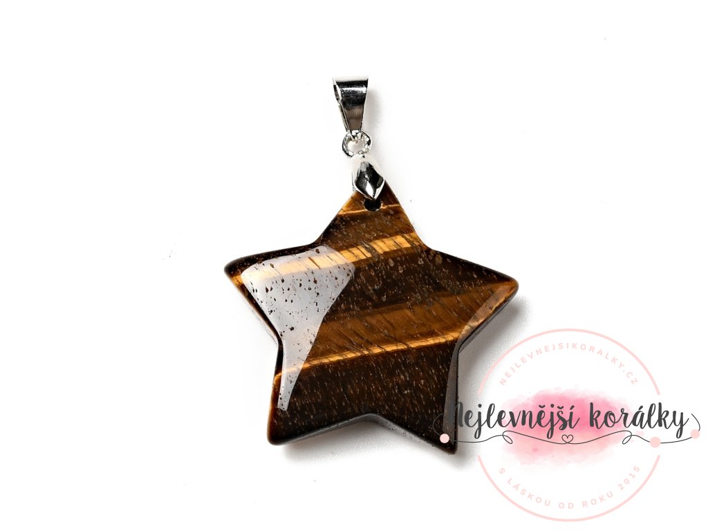 Přívěsek z přírodního kamene - tygří oko - hvězda - 29 x 30 x 8 mm - 1 ks