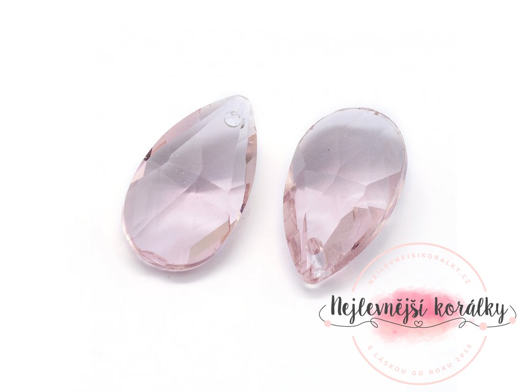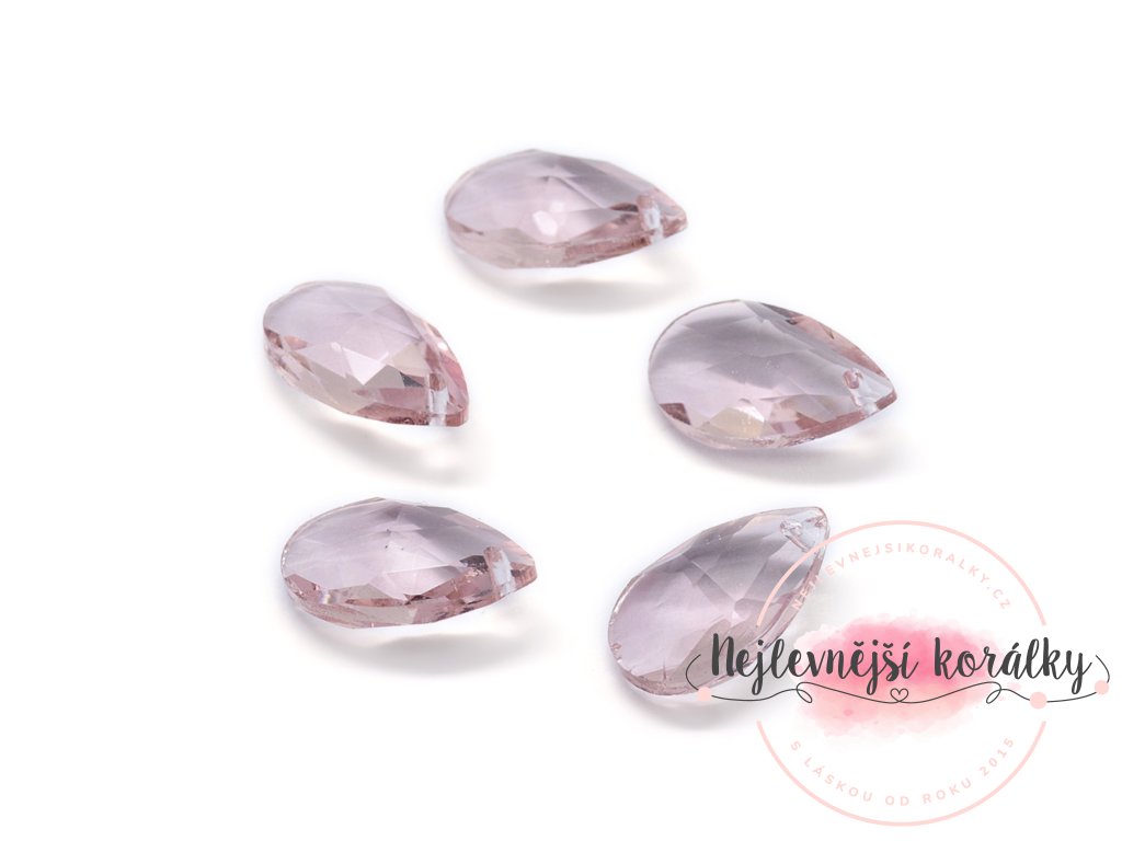 Skleněný přívěsek - kapka - světle růžový - 15 x 9,5 x 5,5 mm - 1 ks