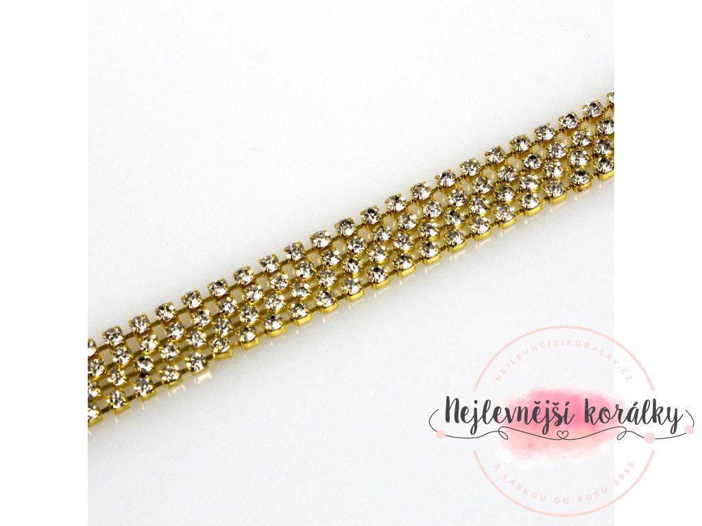 Mosazný řetízek o celkové délce 1,1 metru a šířce cca 2 mm. Řetízek je pokryt kamínky.