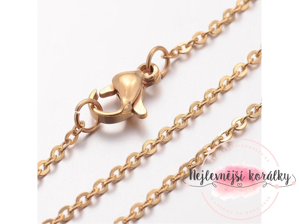 Řetízek z nerezové oceli - zlatý - 45 cm x 1,5 mm - plochá očka - 1 ks