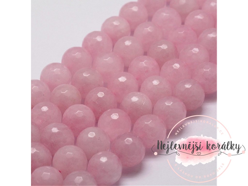 Přírodní korálky z minerálu růženín ve fasetovaném (broušeném) provedení.