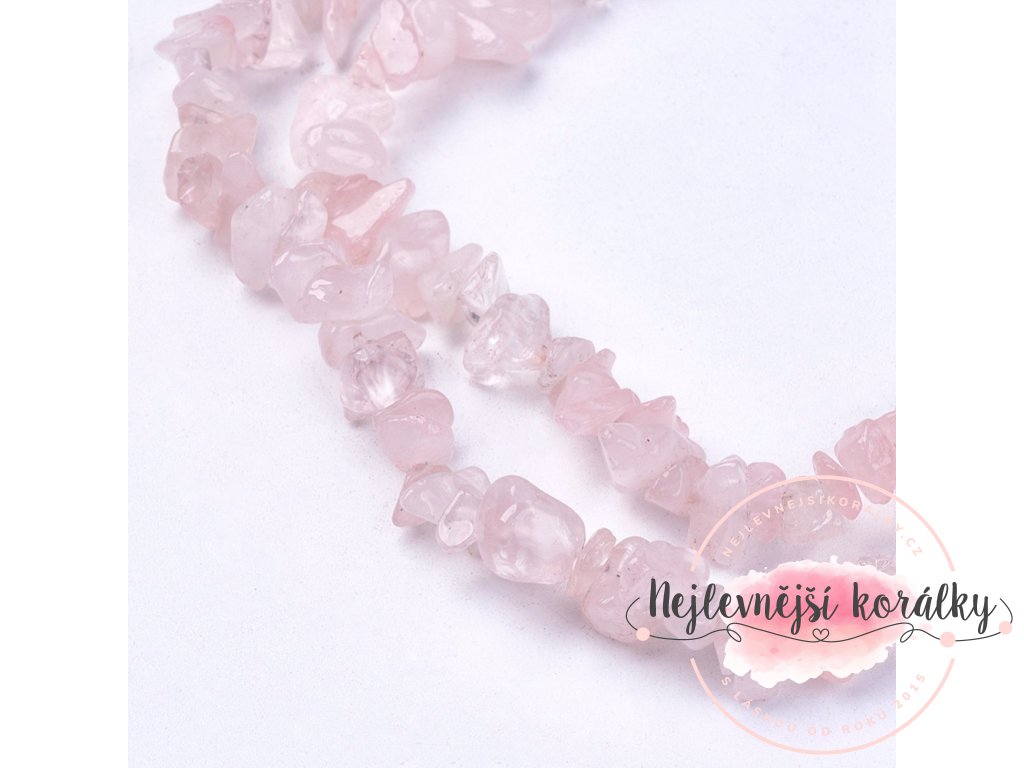 Přírodní korálky ve tvaru zlomků z minerálu růženín.