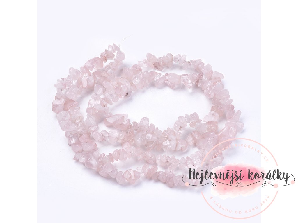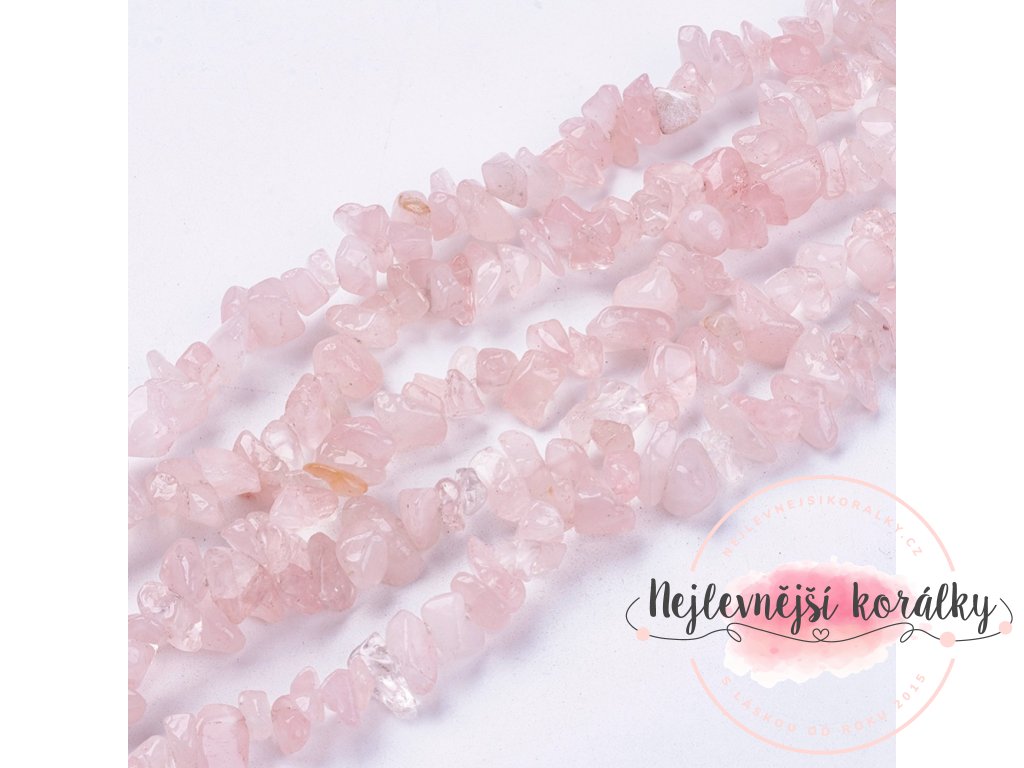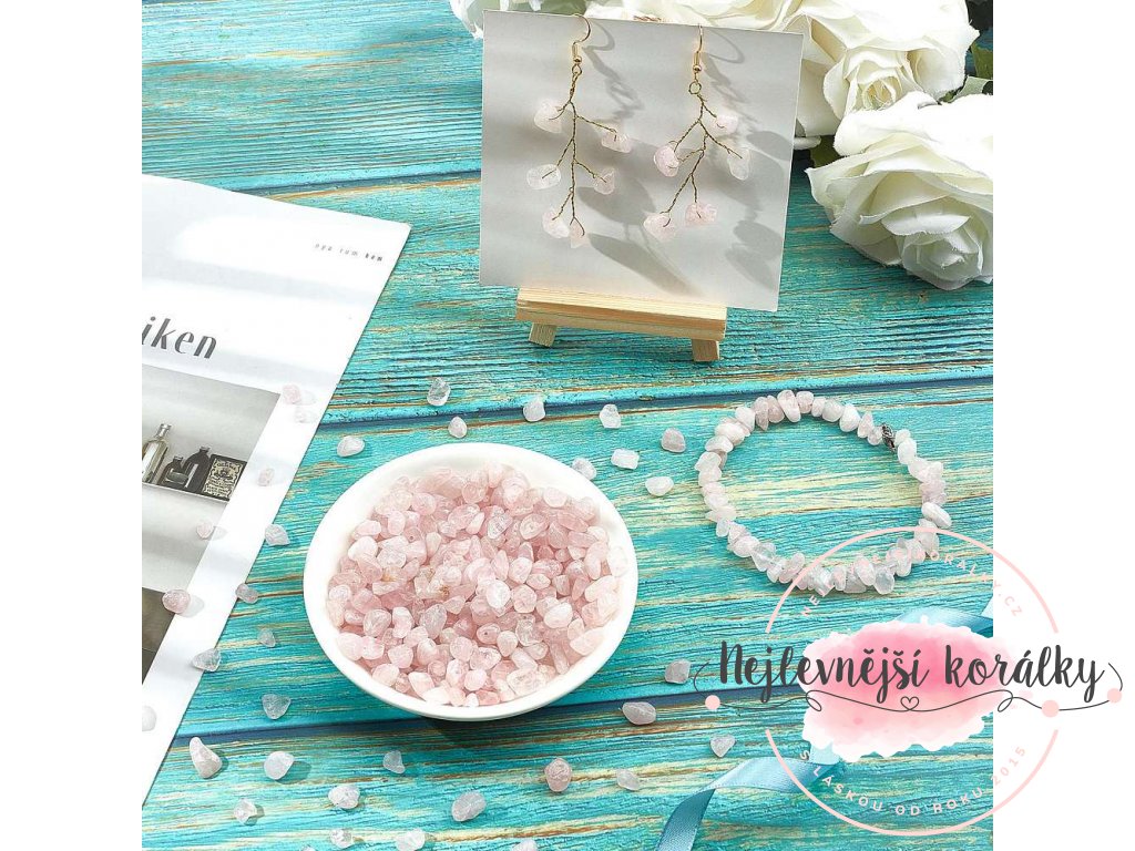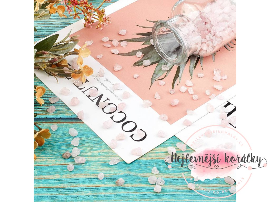 Přírodní korálky ve tvaru zlomků z minerálu růženín.