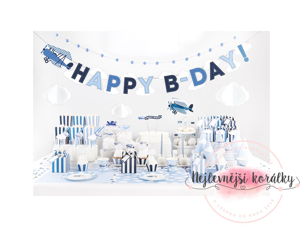 Stuha je v modrobílém podélně pruhovaném provedení.