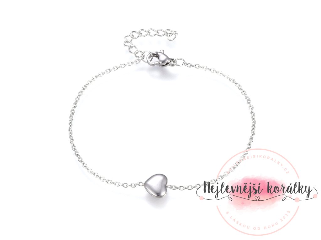 Náramek o celkové délce 17 mm se srdcem o výšce 7,2 mm, šířce 9 mm a hloubce 2,8 mm.