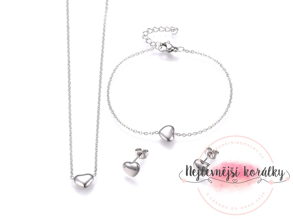 Set řetízku, náramku a náušnic z nerezové oceli - zlatý - srdce - 43 cm ; 17 cm ; 7,2 x 9 x 2,8 mm - 1 ks