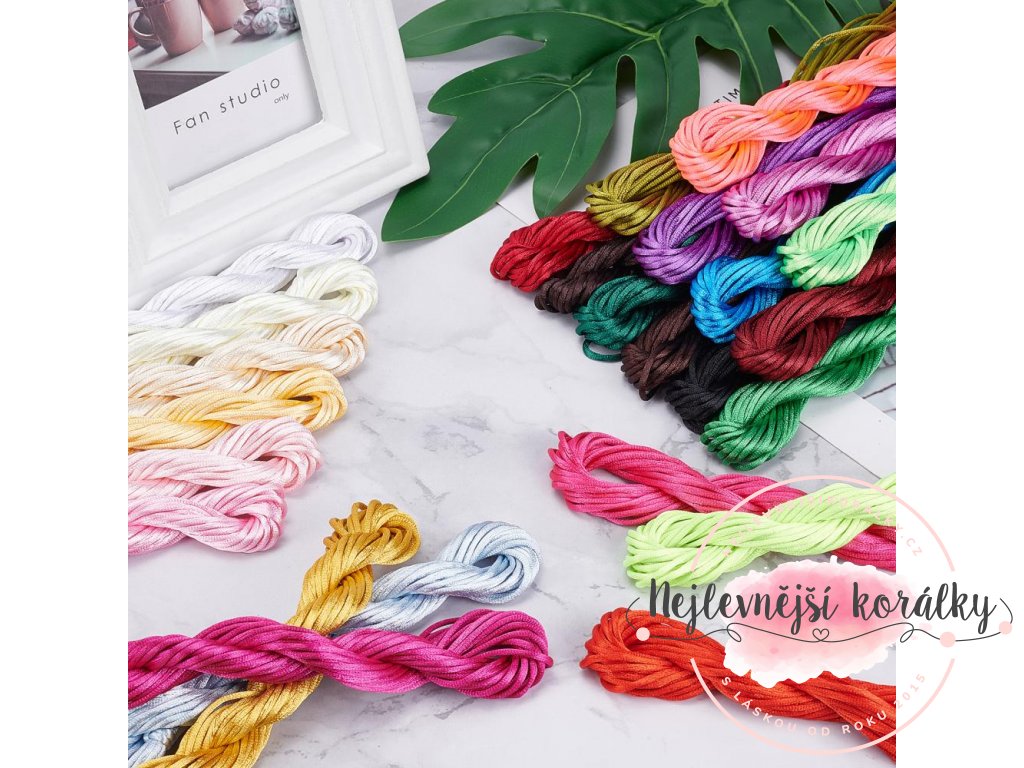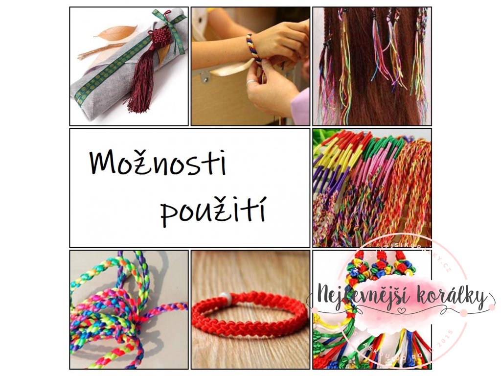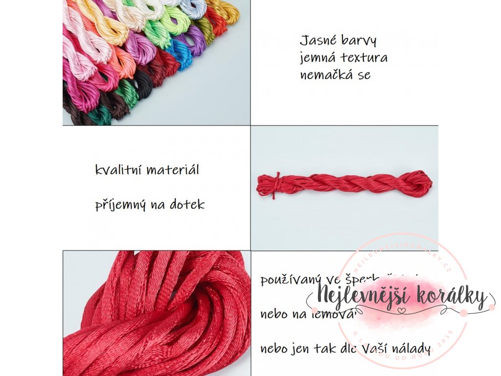 Saténová šňůra je vhodná k navlékání korálků a komponentů s větším otvorem, na výrobu shamballa náramků nebo šňůrkových náramků.