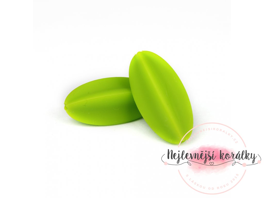 Silikonový korálek - zelený - karambola - 20 x 10 x 10 mm - 1 ks