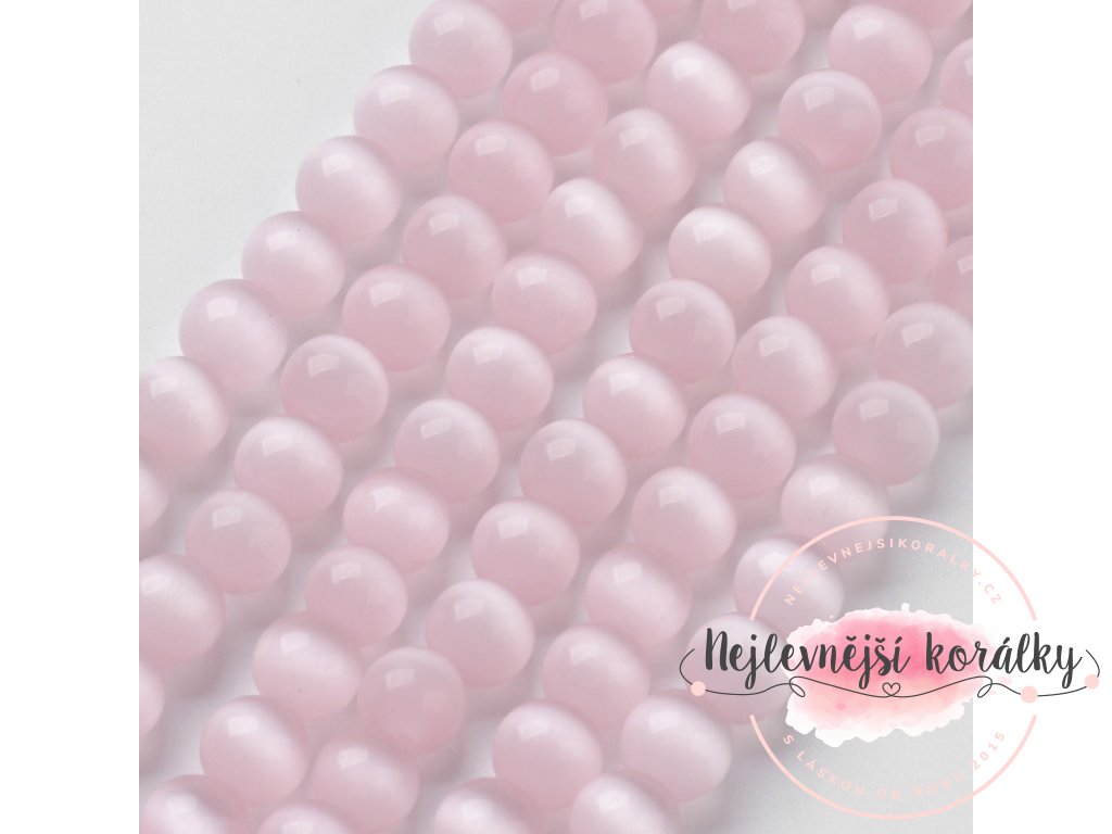 Skleněné korálky - kočičí oči - světle růžové - ∅ 6 mm - 1 ks
