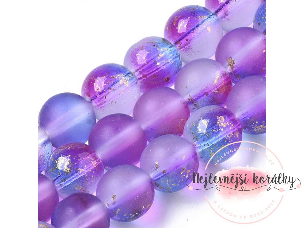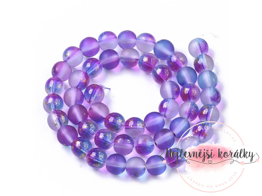 Polomatné korálky - tmavě modro fialové - zlaté zdobení - ∅ 8 mm - 10 ks