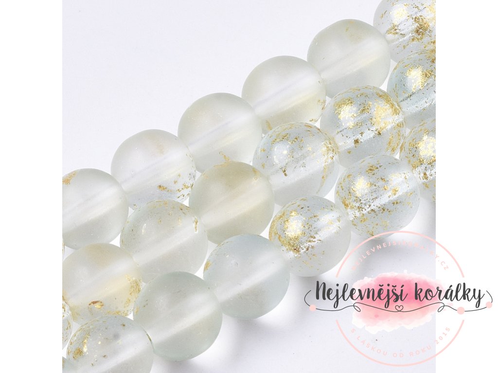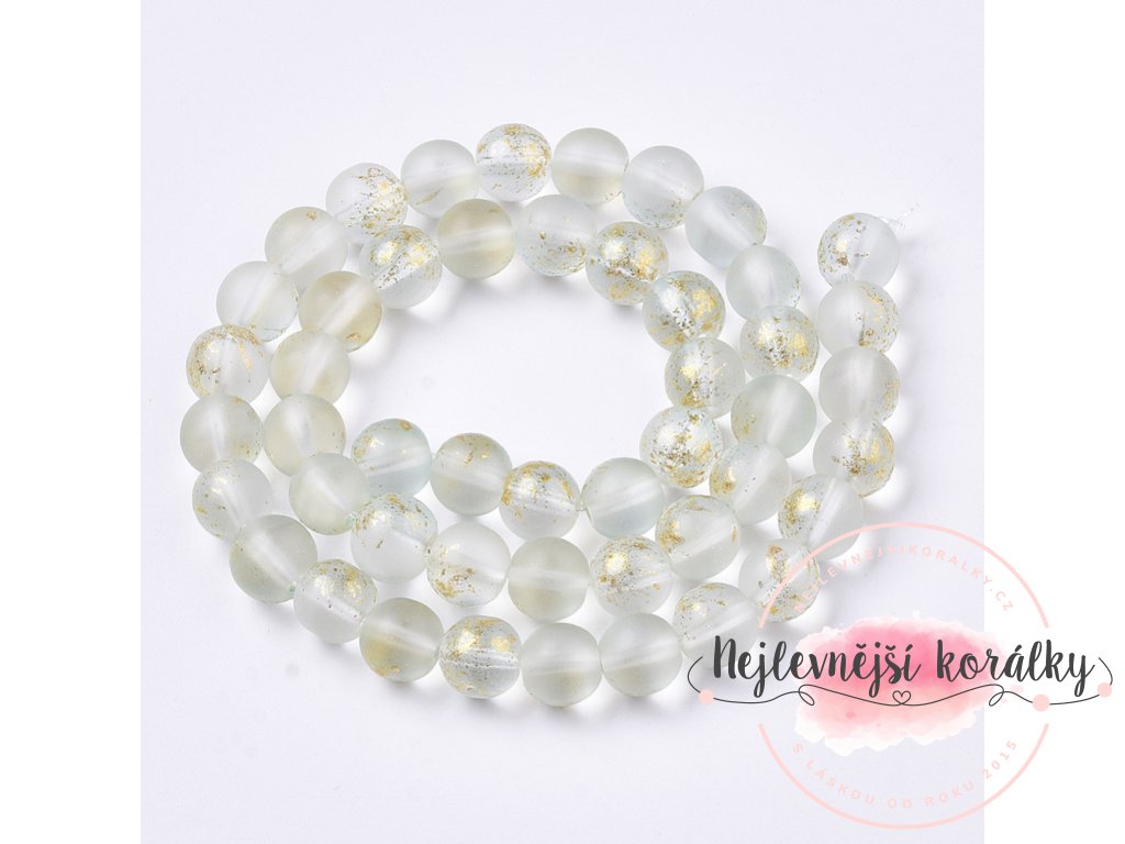 Polomatné korálky - transparentní - zlaté zdobení - ∅ 8 mm - 10 ks