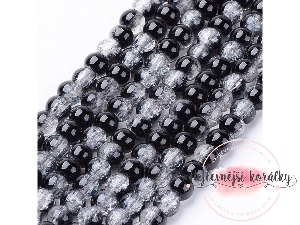Praskané korálky - černobílé - ∅ 6 mm - 10 ks