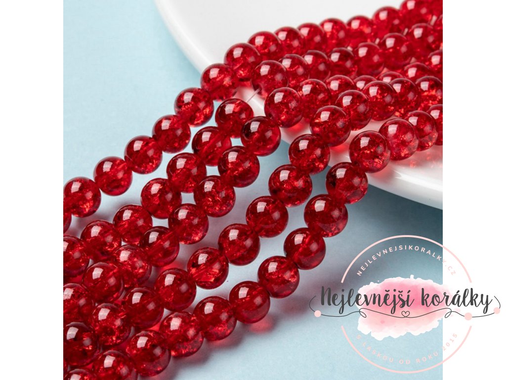 Praskané korálky v červeném provedení o velikosti 8 mm s velikostí průvleku 1,3 ~ 1,6 mm.