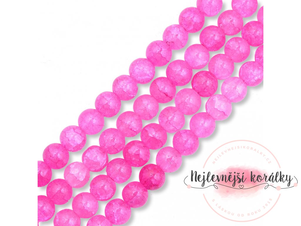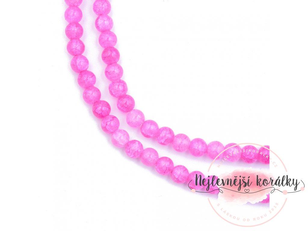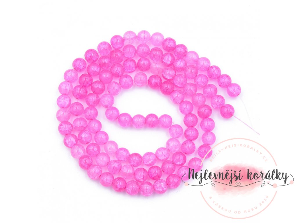 Praskané korálky v růžovém provedení o velikosti 8 mm s velikostí průvleku 1,8 mm.