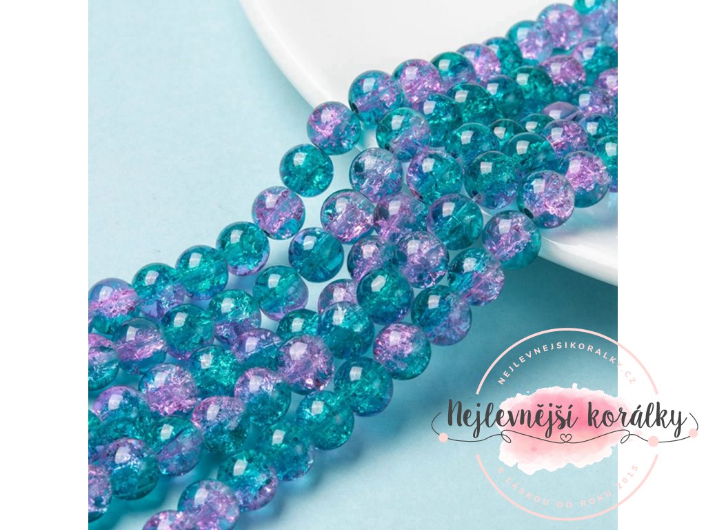 Praskané korálky - tyrkysovorůžové - ∅ 4 mm - 10 ks