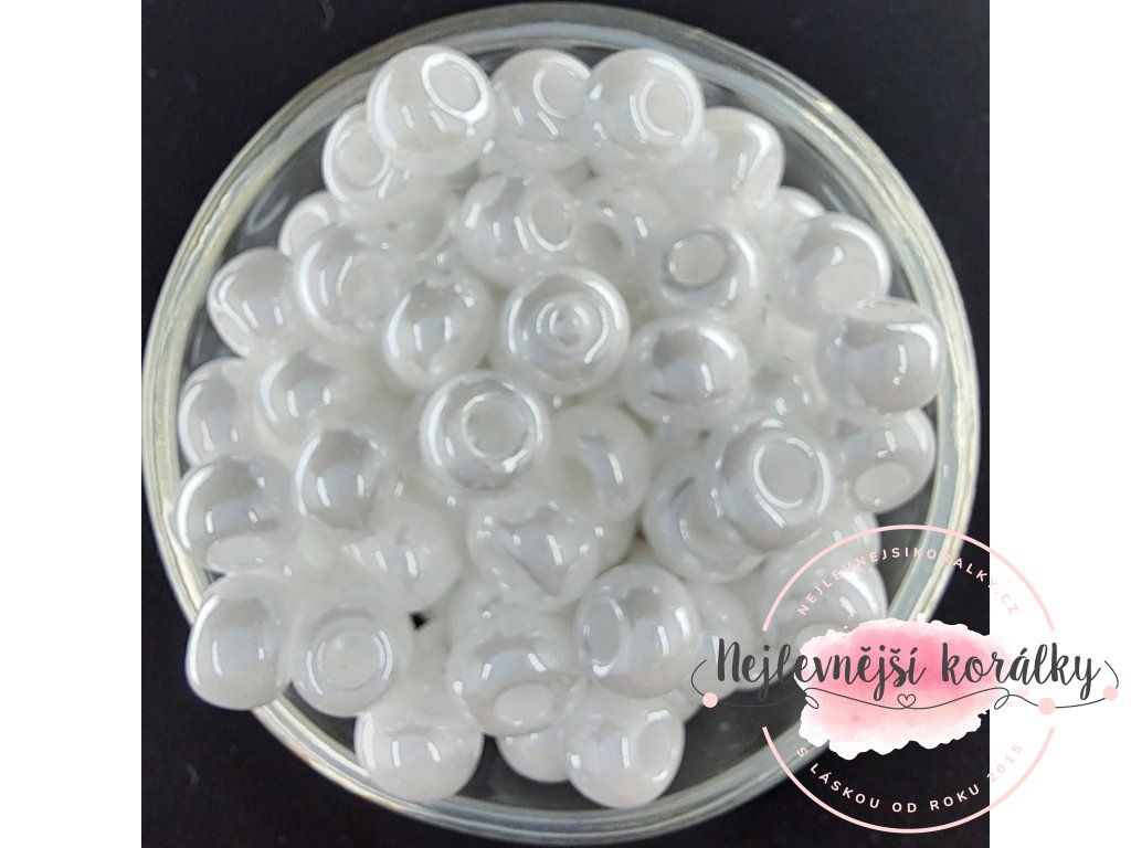 Má bílou perleťovou barvu, velikost 6,8 - 7,3 mm a kulatou dírku. Velikost průvleku je cca 2 mm.
