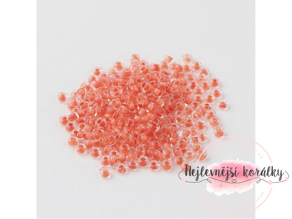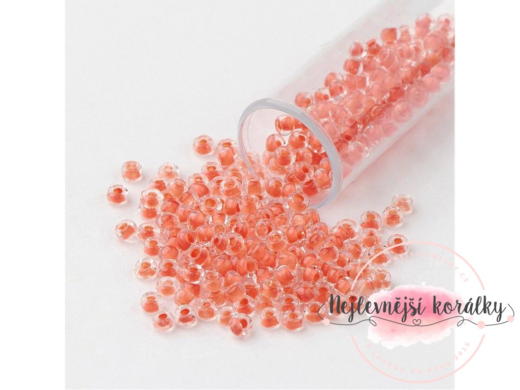Skleněný rokajl - 11/0 - 2,3 x 1,5 mm - průhledný s lososovým středem - třída A -1 g