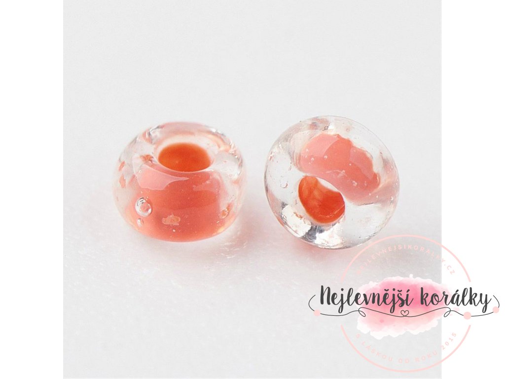 Skleněný rokajl ve speciálním provedení - transparentní s lososovým středem.