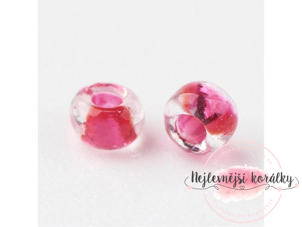 Skleněný rokajl ve speciálním provedení - transparentní s malinovým středem.
