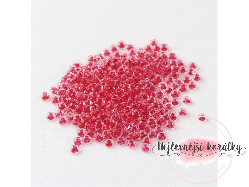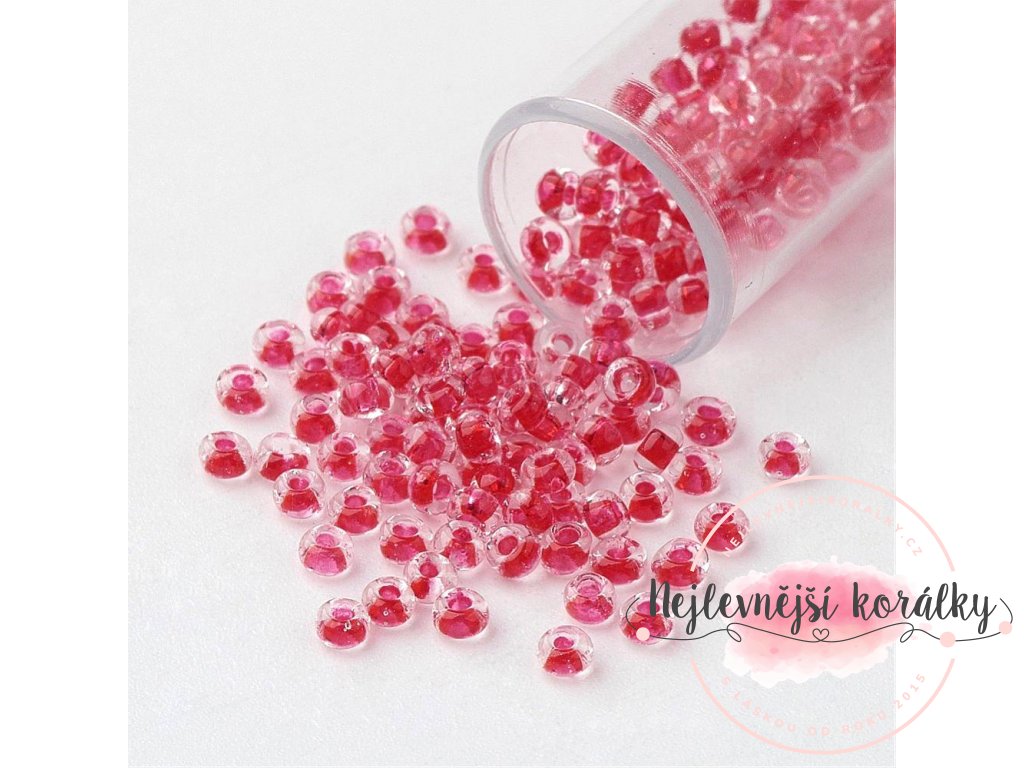 Skleněný rokajl - 11/0 - 2,3 x 1,5 mm - průhledný s malinovým středem - třída A -1 g