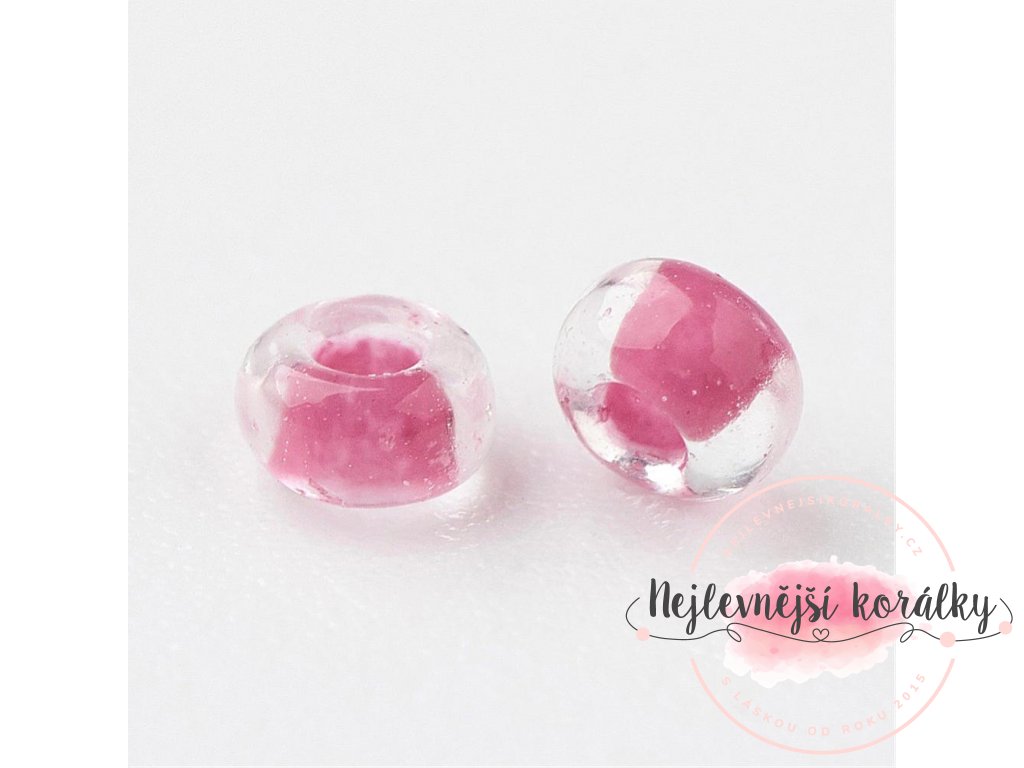 Skleněný rokajl - 11/0 - 2,3 x 1,5 mm - průhledný s šeříkovým středem - třída A -1 g