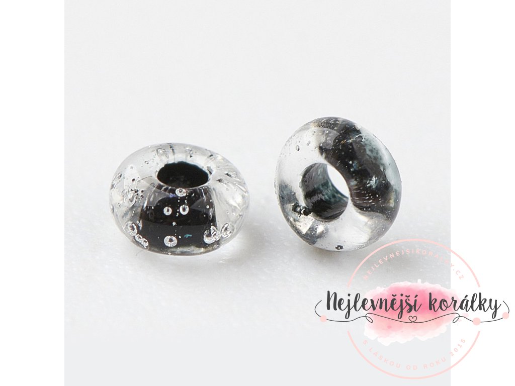 Skleněný rokajl ve speciálním provedení - transparentní s černým středem.