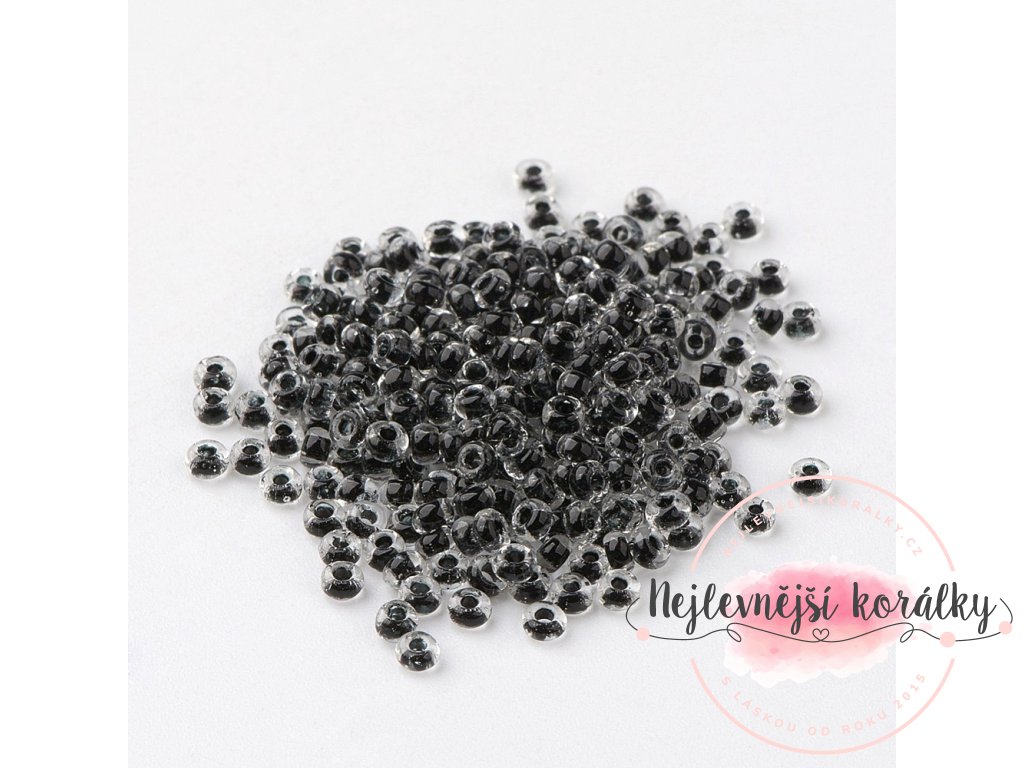 Skleněný rokajl - 6/0 - 4 x 3 mm - průhledný s černým středem - třída A -1 g