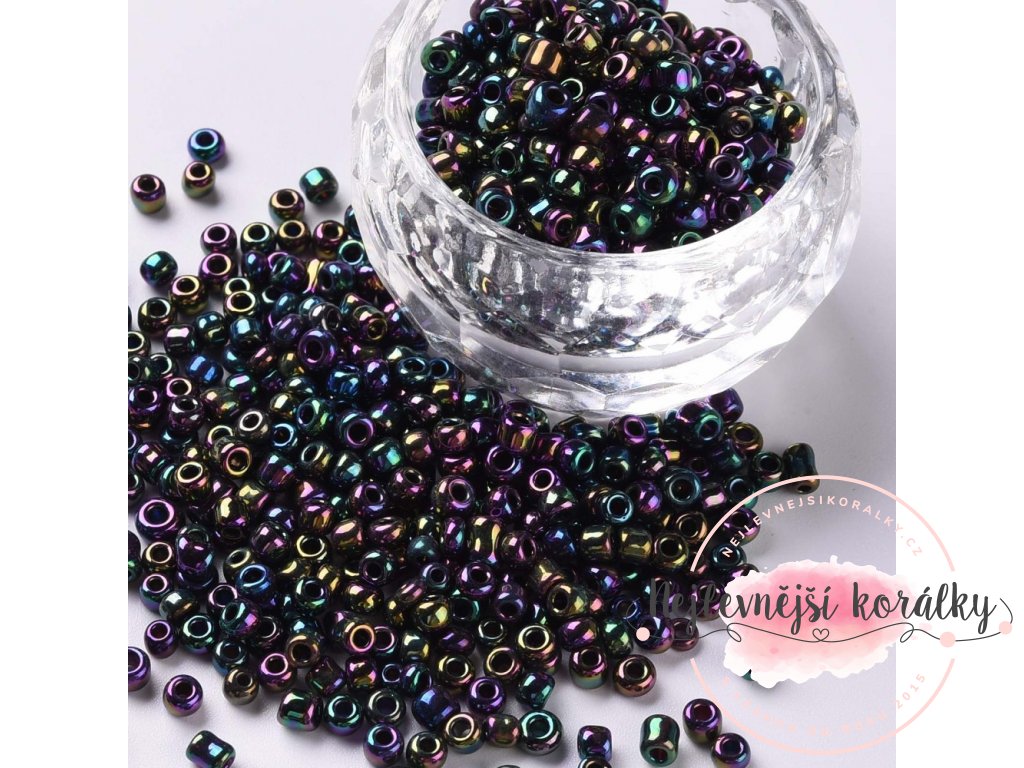 Skleněný rokajl - 8/0 - 3 mm - metalický tmavý - 1 g