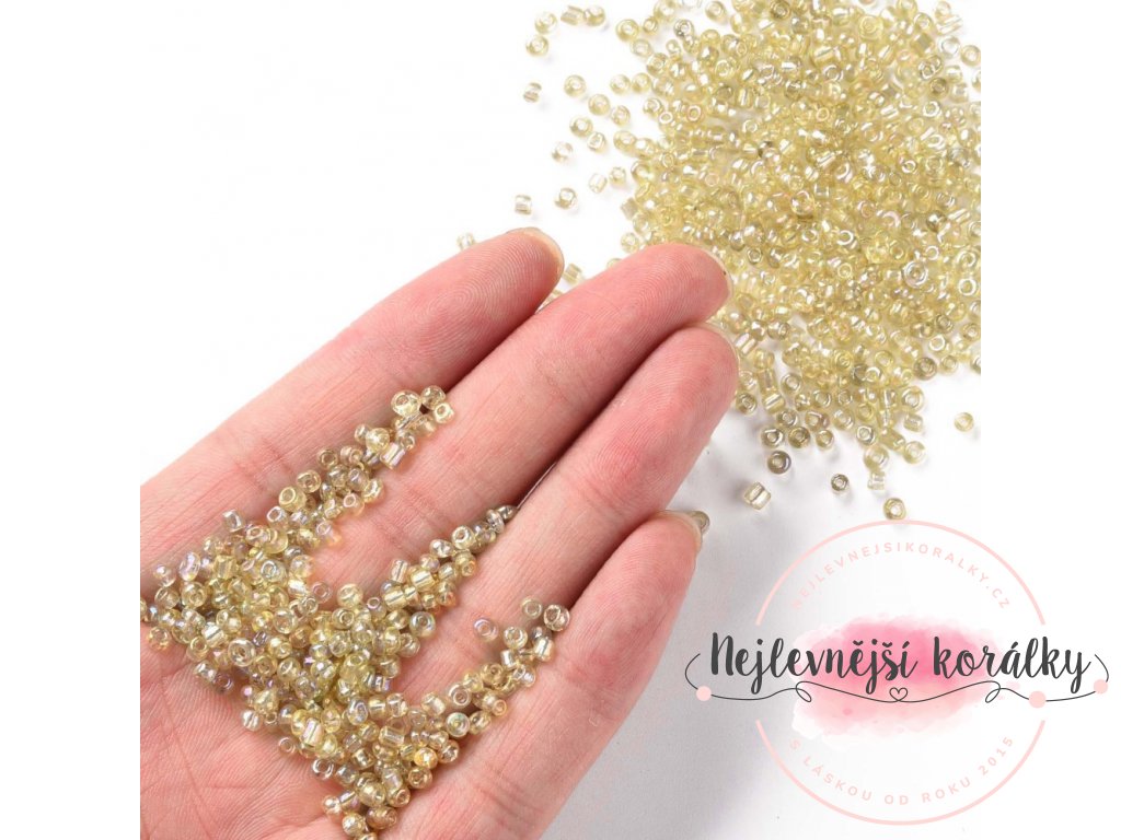 Skleněný rokajl - 8/0 - 3 mm - zlatý s AB efektem - 1 g