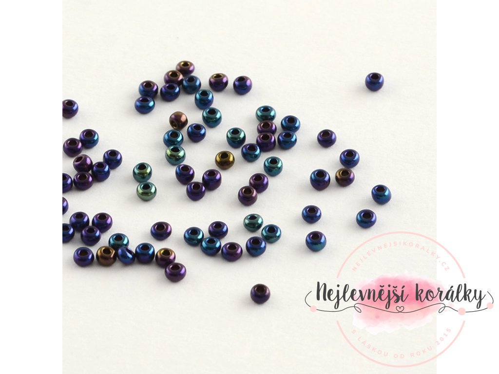 Skleněný rokajl - metalicky duhový - třída A - 2 x 1,5 mm - 1 g