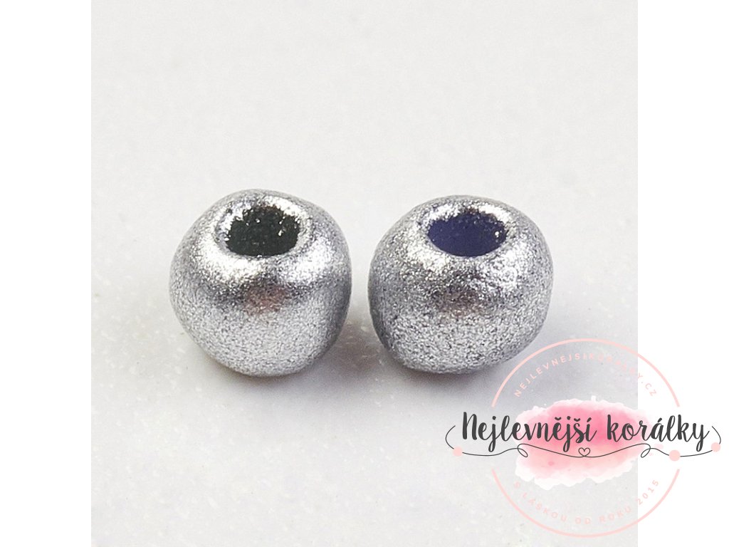 Skleněný rokajl třídy A v platinovém provedení o šířce 2 mm, výšce 1,5 mm s velikostí průvleku 0,3 mm.