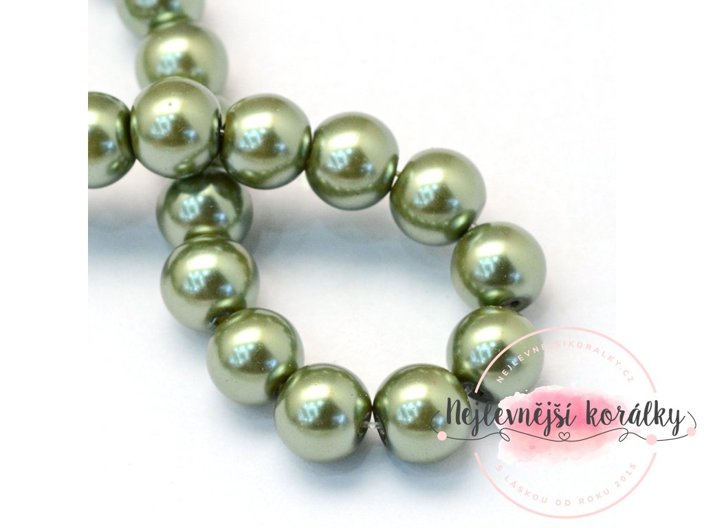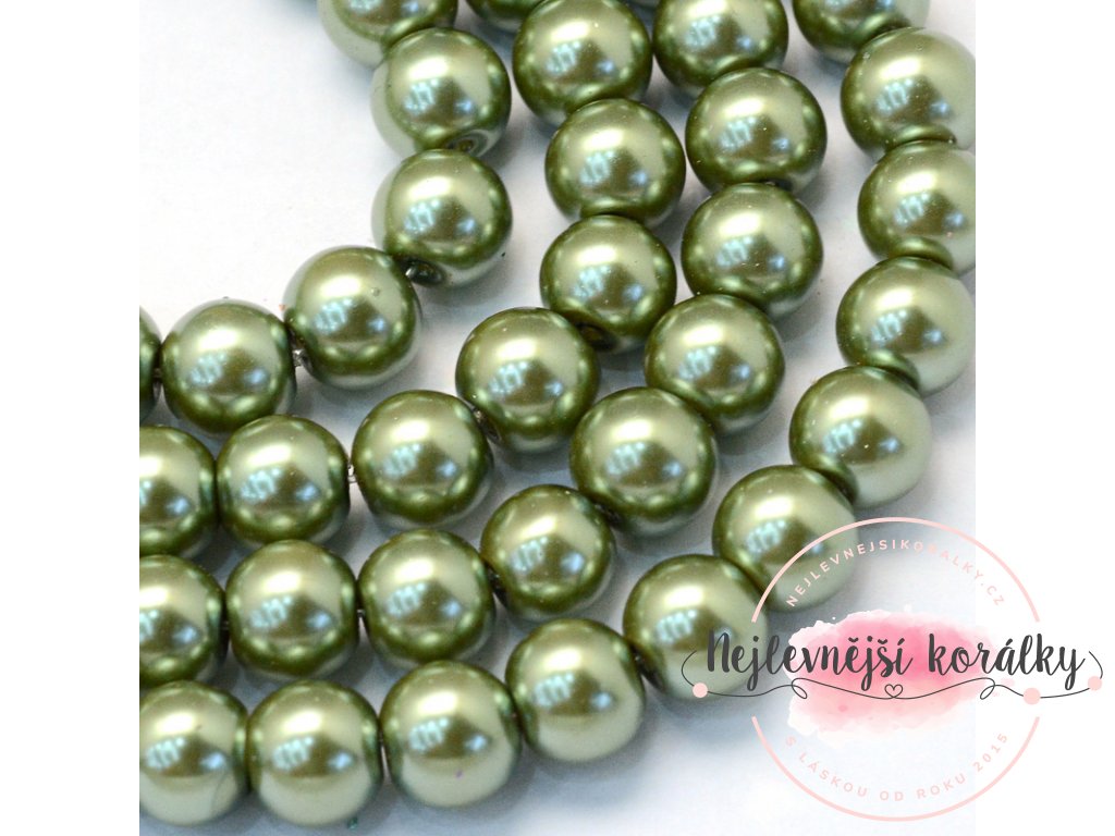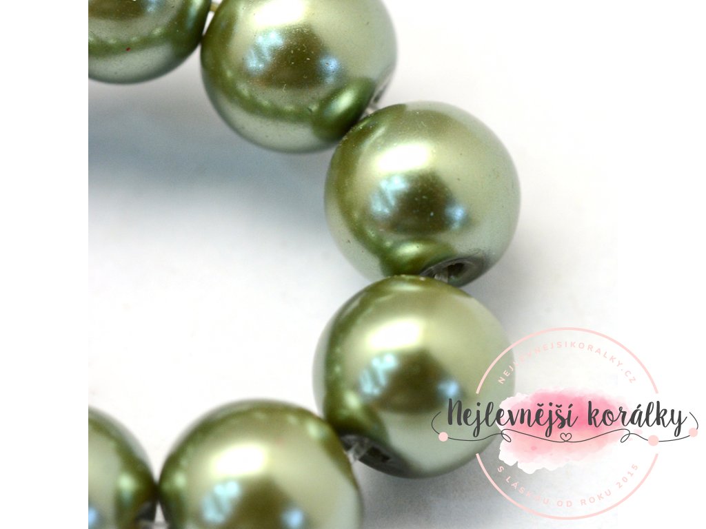Voskované perly - olivová - Ø 8 mm - 10 ks