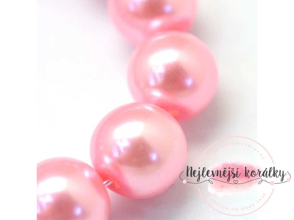 Voskované perly v růžovém provedení o velikosti 8 ~ 9 mm s velikostí průvleku cca 1 mm.