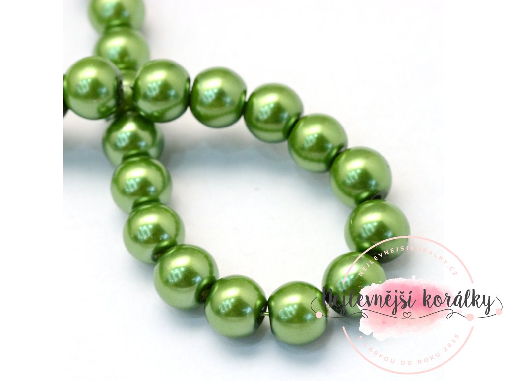 Voskované perly - tmavě zelené - Ø 8 mm - 10 ks