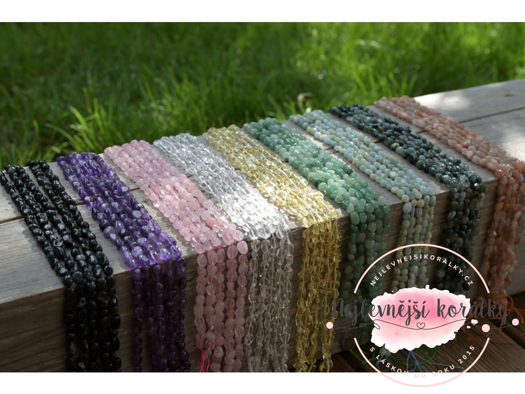Korálky ve tvaru oblázků - nugetek jsou různě velké a tvarově nesouměrné, díky tomu působí velice zajímavě.