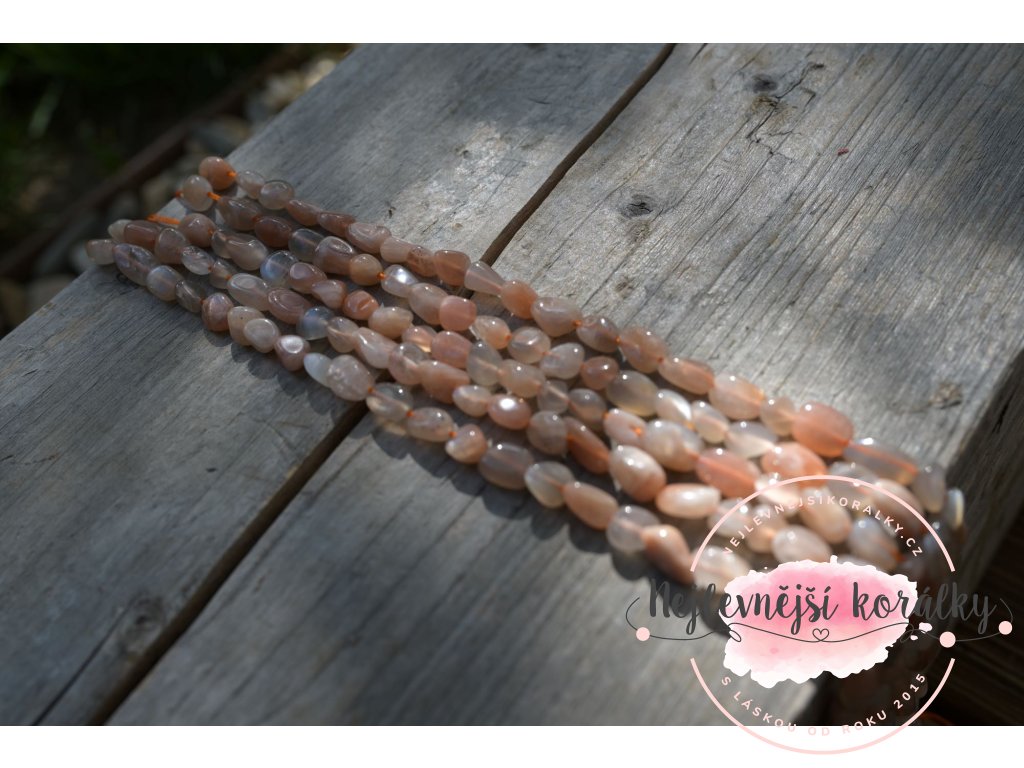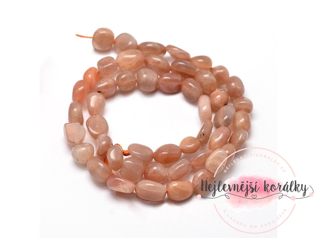 Přírodní korálky z minerálu sluneční kámen ve tvaru oblázků.