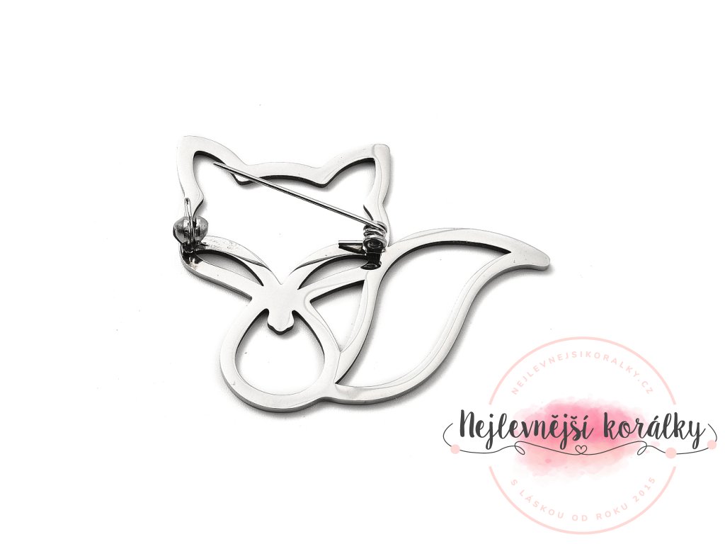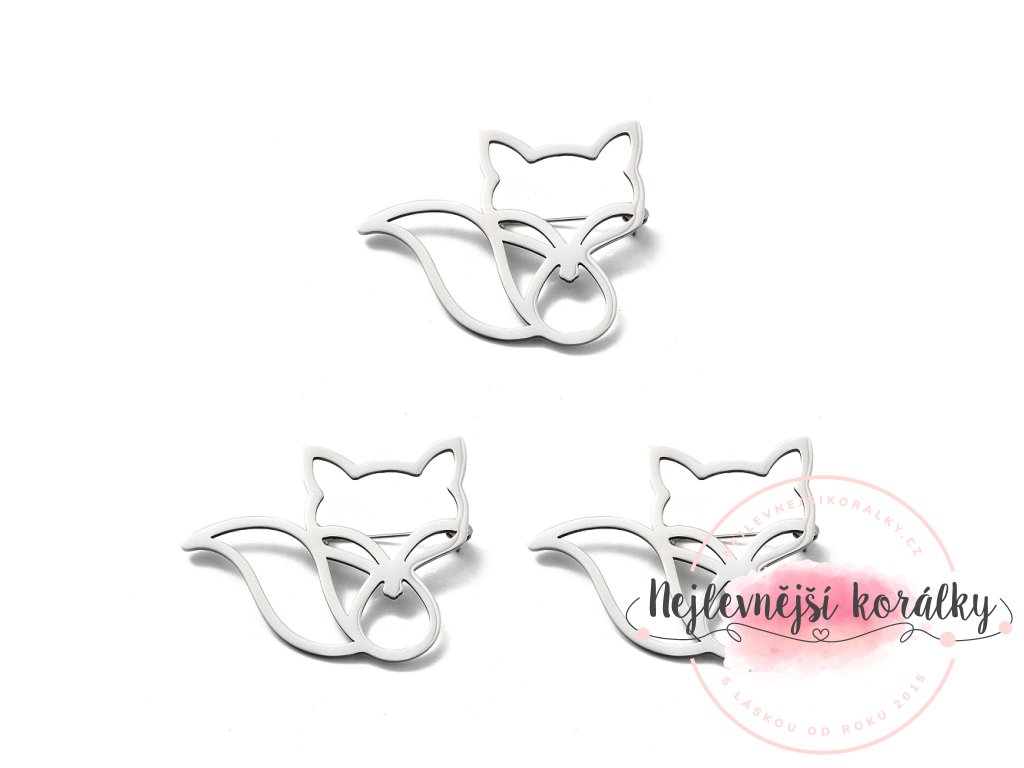 Brož z nerezové oceli - liška - 47,5 × 37 mm - 1 ks