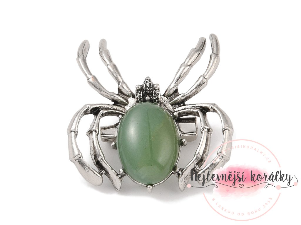 Brož Pavouk se zeleným avanturínem – klidná síla a jemný lesk přírody
