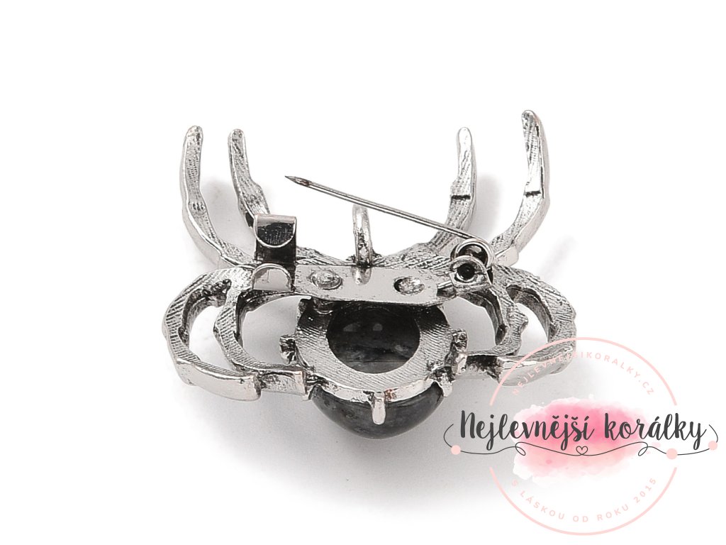 Brož Pavouk s larvikitem – tajemný šperk s metalickým leskem
