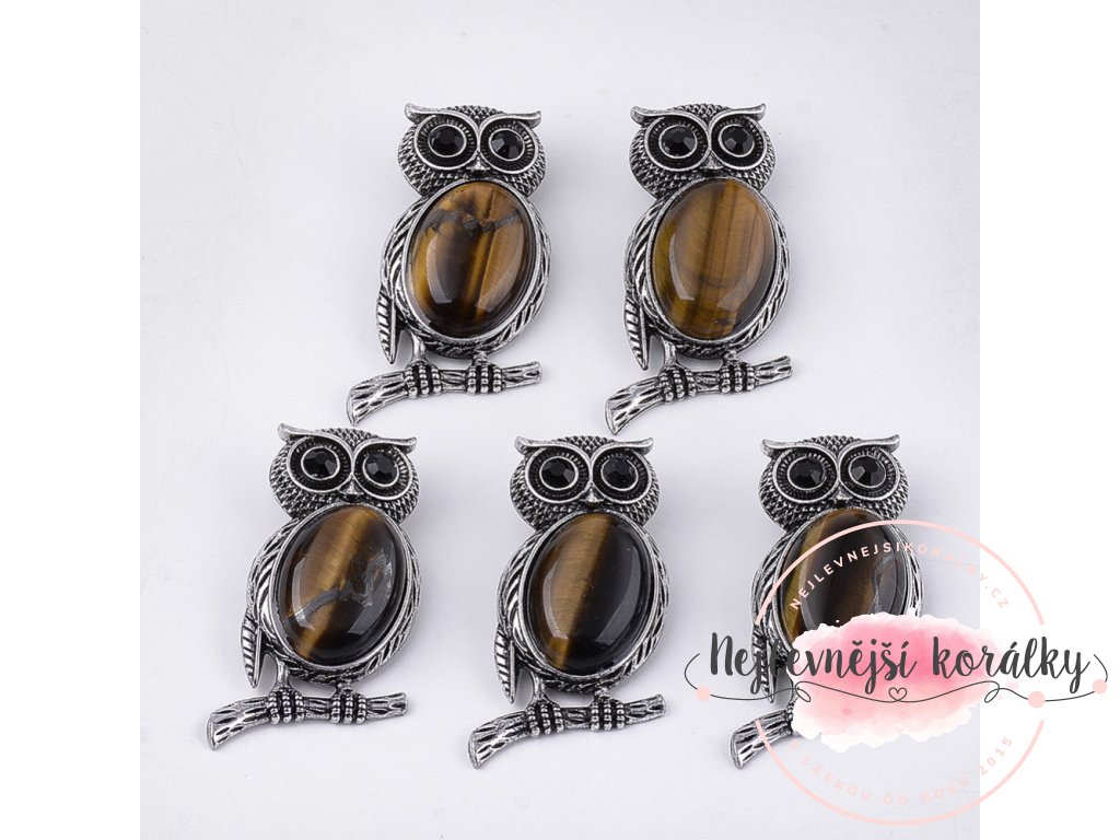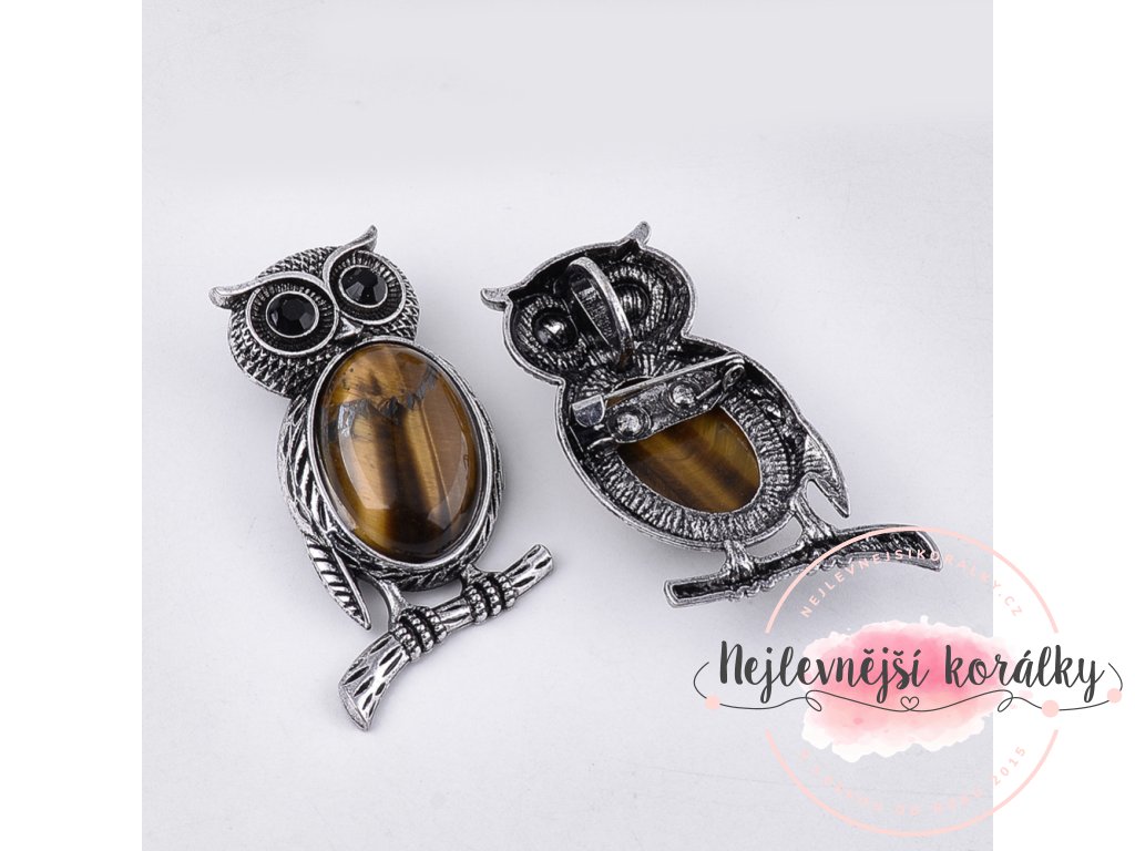Elegantní a silně působící brož ve tvaru sovy s vloženým přírodním tygřím okem – kamenem odvahy, ochrany a vnitřní síly. Dekorativní detaily v starostříbrné barvě doplňují jemné třpytivé kamínky, které zvýrazňují oči i peří sovy a dodávají broži výrazný charakter.