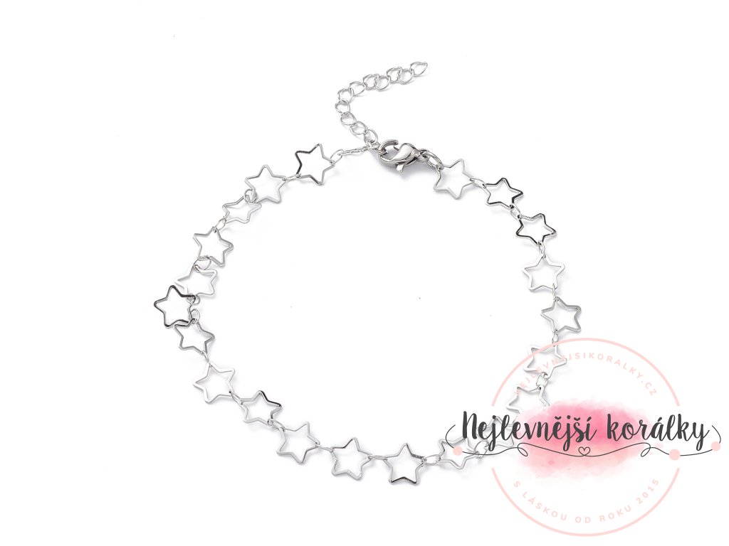 Náramek na kotník z nerezové oceli -hvězdičkový řetízek - platinový - 1 ks