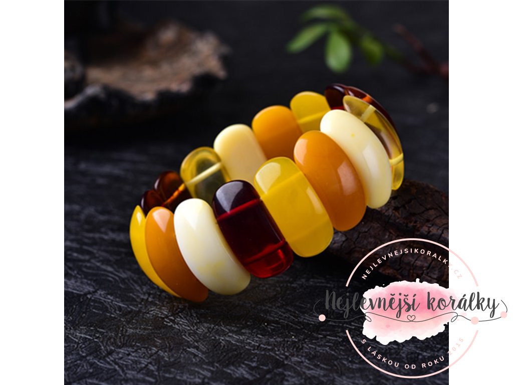 Luxusní pružný náramek z přírodního jantaru