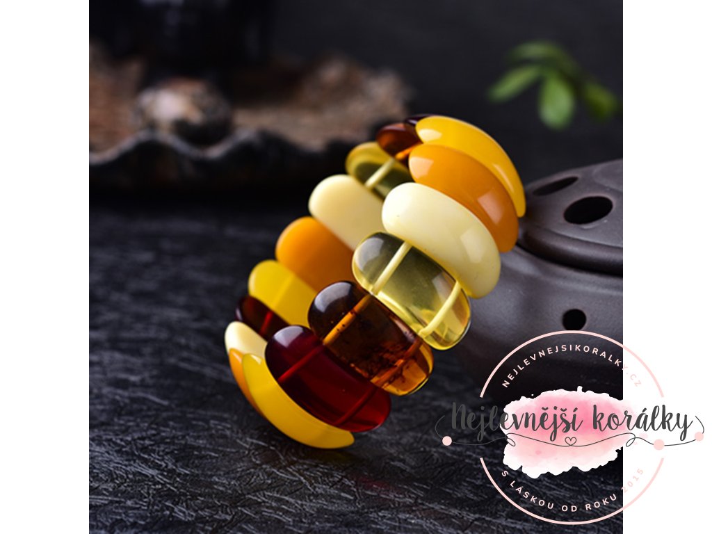 Náramek přírodního jantaru - ve tvaru obdélníkových segmentů - univerzální - 1 ks