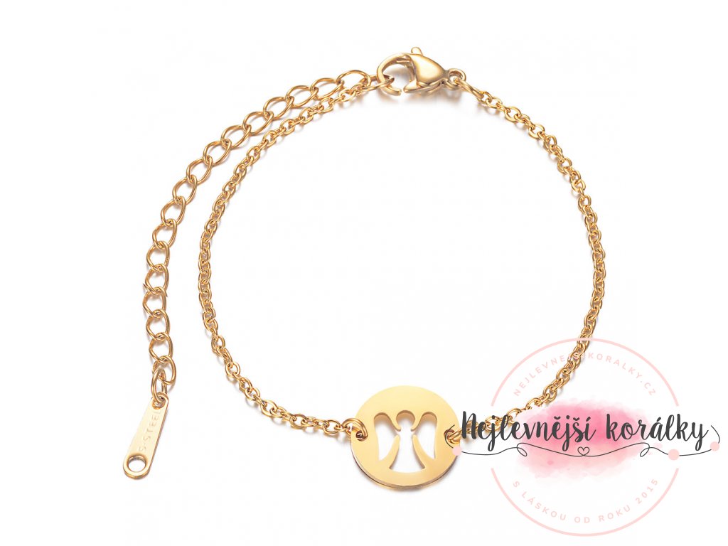 Náramek z nerezové oceli - anděl - zlatý - 15 - 18 cm - 1 ks